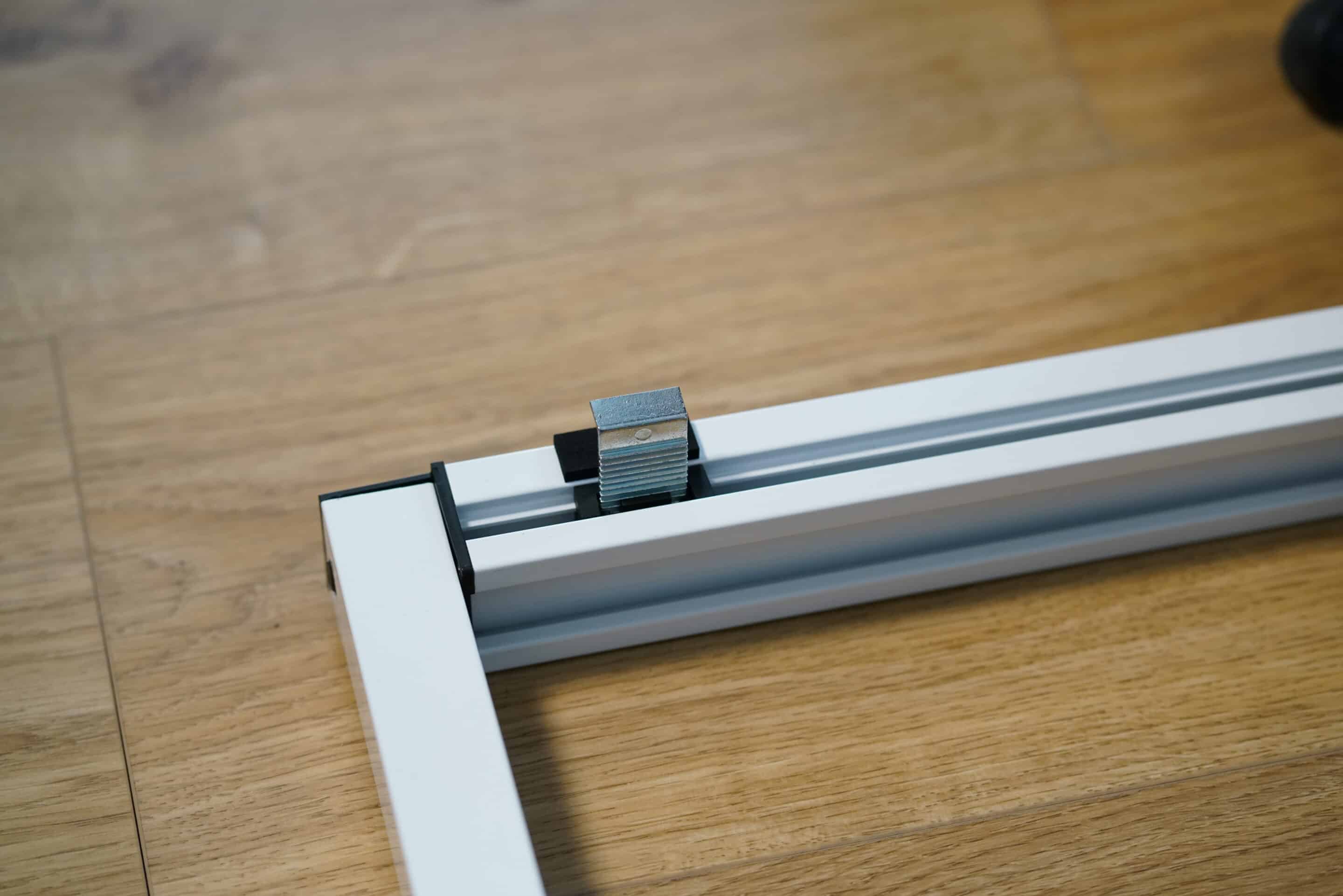 Dankzij een extra clip in het verbindingsprofiel (onderdeelnr. 4) kan ons rolgordijn zelfs met zeer lage overstekken en regenlijsten geïnstalleerd worden. De extra clip vergroot het contactoppervlak en verdeelt daardoor het gewicht van het buitenrolgordijn beter over het raamkozijn.