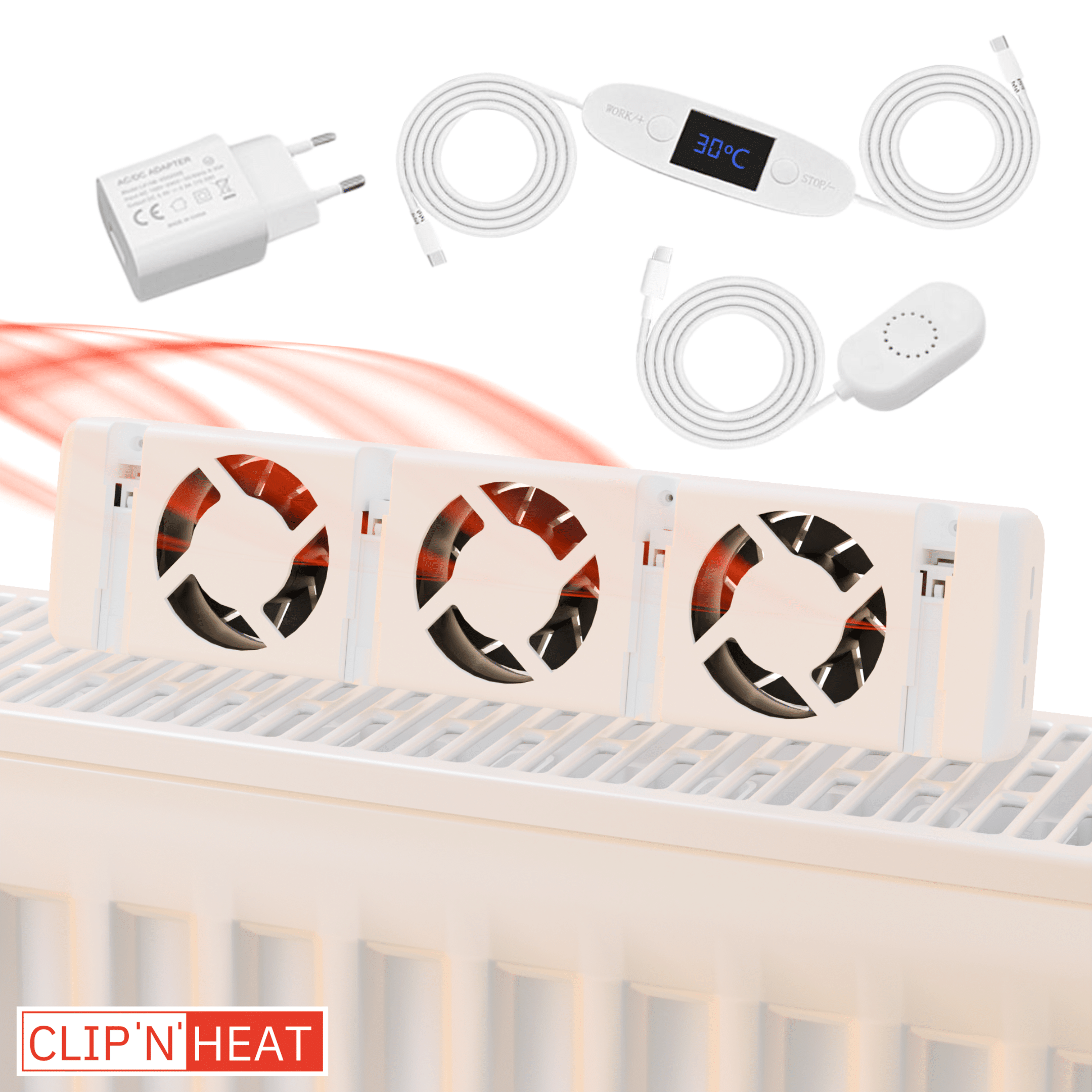 Ervaar meer comfort en bespaar met de CLIP'N'HEAT radiatorventilator enkele set.