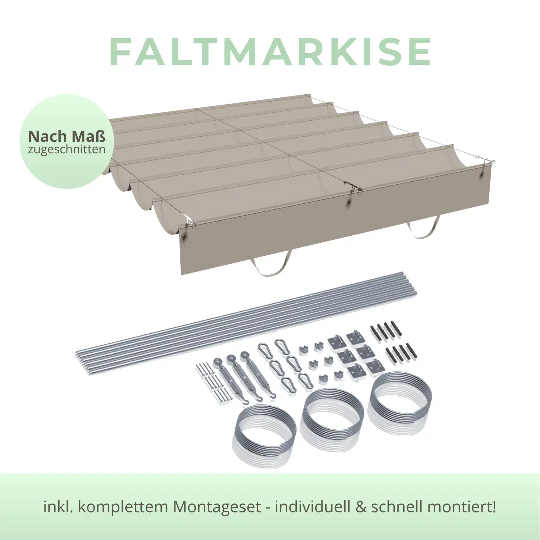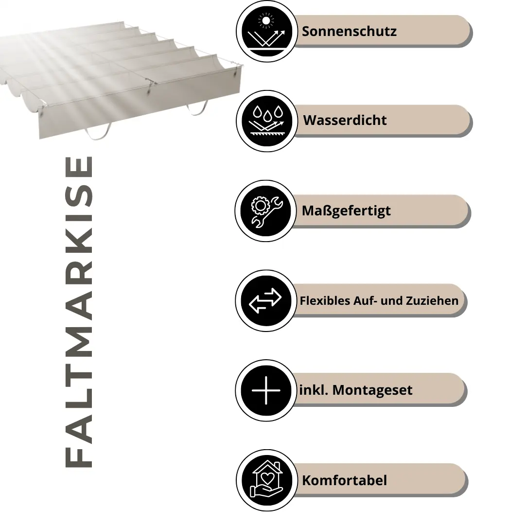 De gebruikte stof is lucht- en waterdoorlatend, UV-bestendig en zorgt voor een aangenaam klimaat onder je luifel - zonder opwarming. Het dient ook als regenbescherming bij lichte regen.