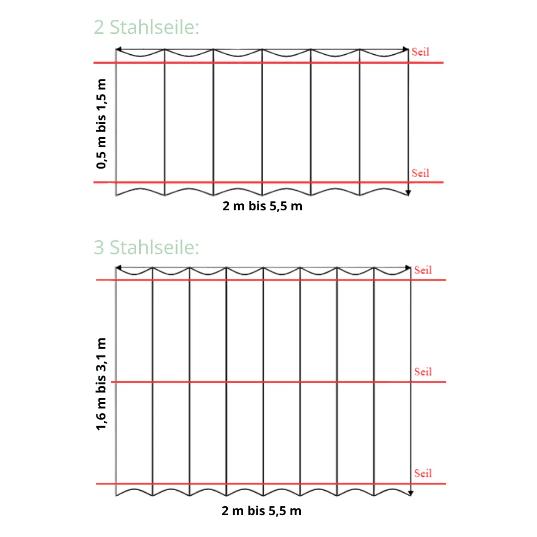 De luifel kan eenvoudig worden verplaatst langs gespannen roestvrijstalen kabels - voor schaduw waar je het nodig hebt. Helemaal open of half dicht - je bepaalt zelf de lichtomstandigheden.