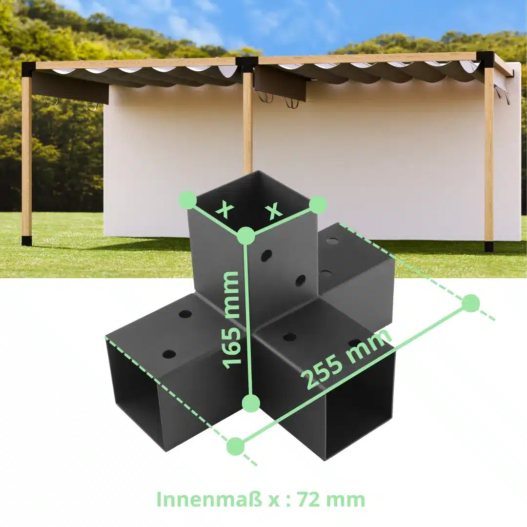 Met onze hoogwaardige stalen hoekverbindingen zet je je terrasoverkapping, pergola of carport in een handomdraai in elkaar. De nauwkeurig vervaardigde verbindingen zorgen voor een stabiele constructie en een moderne uitstraling.